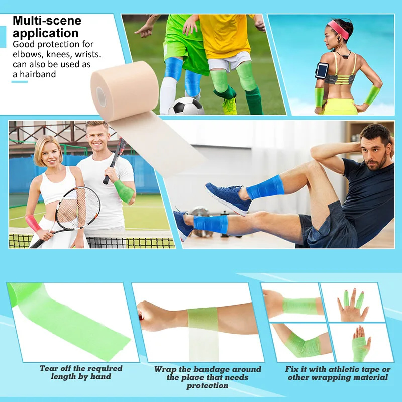 Wszechstronne zastosowania: wstępne owinięcie pod taśmą sportową, przytrzymanie podkładek i zimnych okładów, zapobieganie otarciom, zabezpieczanie ochraniaczy goleni lub tworzenie tymczasowych opasek na głowę.